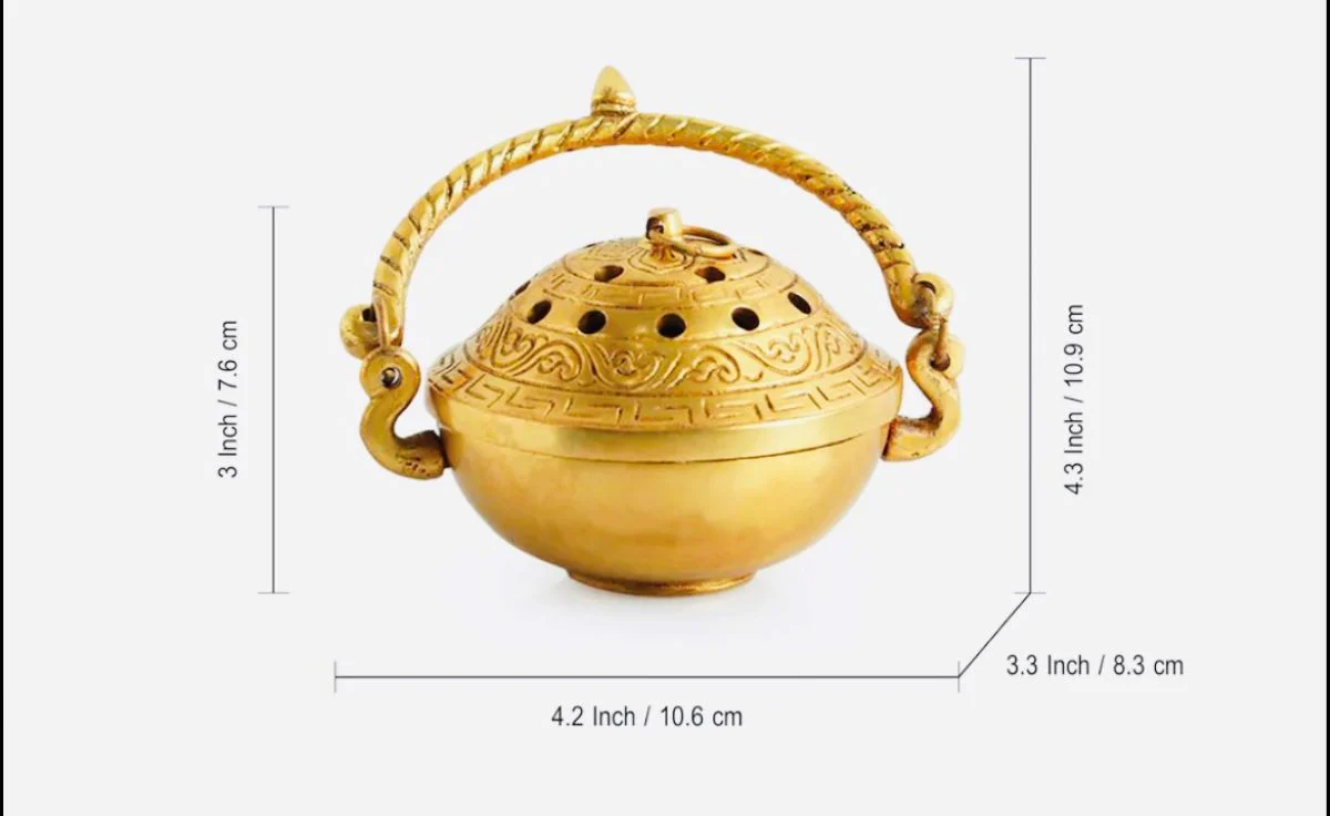 Experience the perfect blend of elegance and functionality with our handcrafted brass incense holder. Meticulously crafted by skilled artisans, this unique piece showcases the timeless beauty of brass, polished to a warm, inviting sheen. Measuring approximately 4.2*3.3*4.1 inches , it’s designed to securely hold a variety of incense sticks, making it an ideal addition to your meditation space, living room, or bedside table.