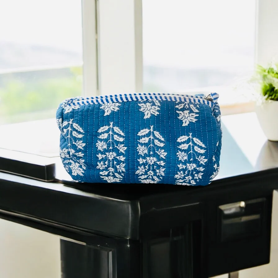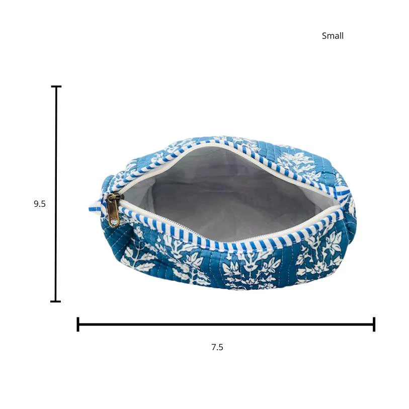 Measuring conveniently to fit snugly in your handbag or backpack, this cotton block printing pouch set offers versatility and durability. The breathable fabric ensures your items stay protected while the secure zipper closure keeps everything neatly in place. Easy to clean, simply hand wash or machine wash in cold water. These pouches are designed to be both functional and fashionable, making them ideal as thoughtful gifts or personal treats.