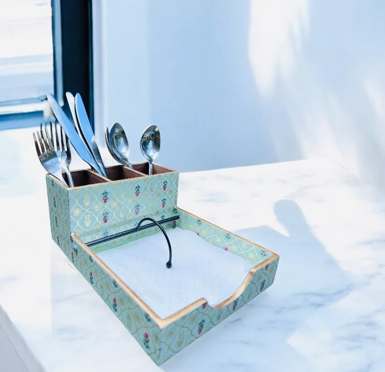 This wooden tissue and cutlery holder is thoughtfully crafted to keep your essentials organized and within easy reach, while adding a touch of timeless elegance to your kitchen or dining area. This wooden Tissue cutlery holder is perfect for holding tissue paper, napkin, cutlery, spoon, fork, chopstick and knife even storage accessories, makeup holder, countertop, display and much more.
